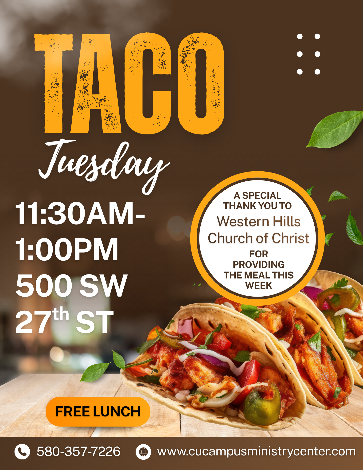 Tuesday Lunches CU Students, Faculty, and Staff! Please come join us every Tuesday 11:30am-1:30pm for a free lunch!